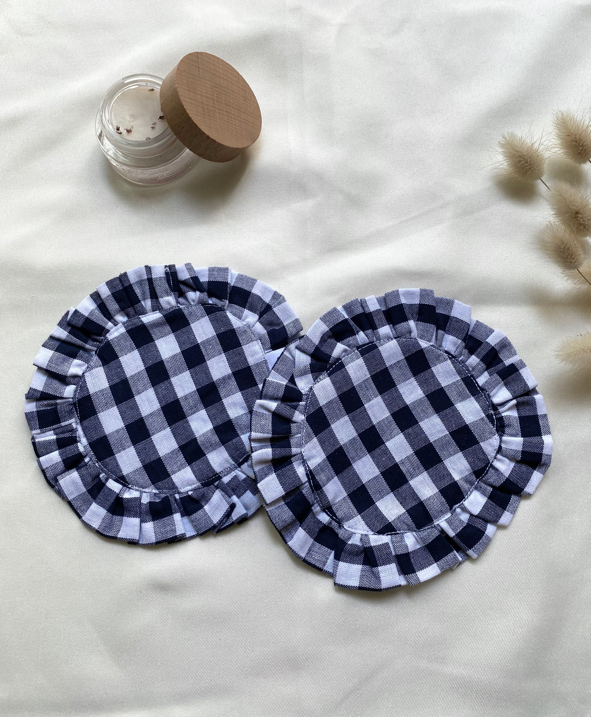 Ce beau duo est en coton vichy bleu et blanc avec leurs fronces, ils sont idéaux pour décorer votre table.