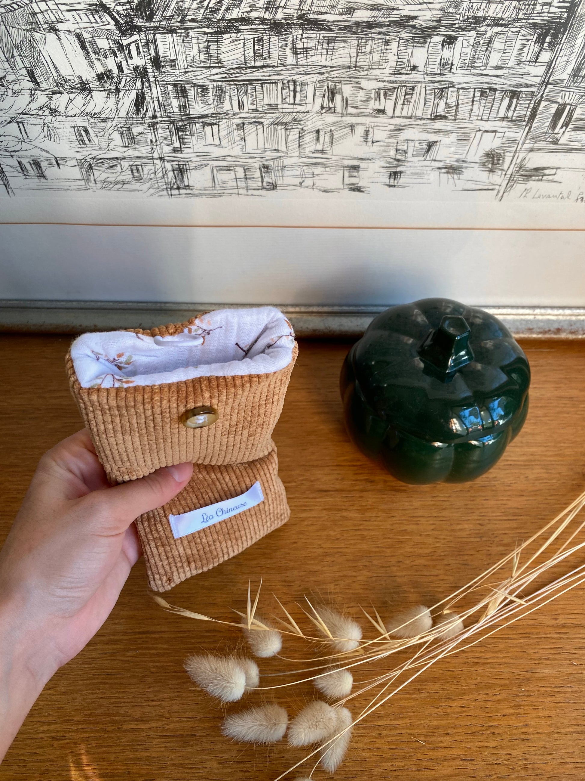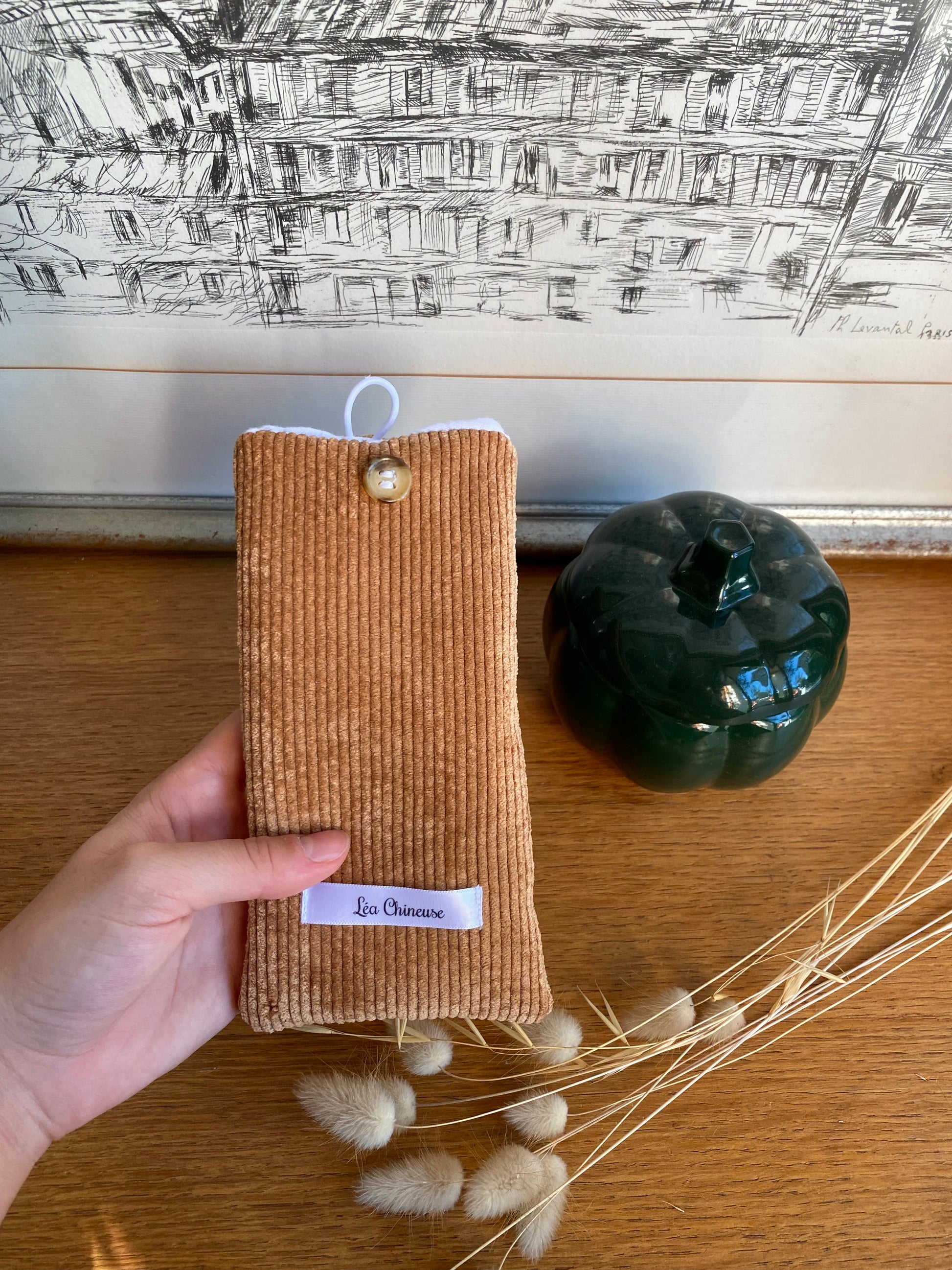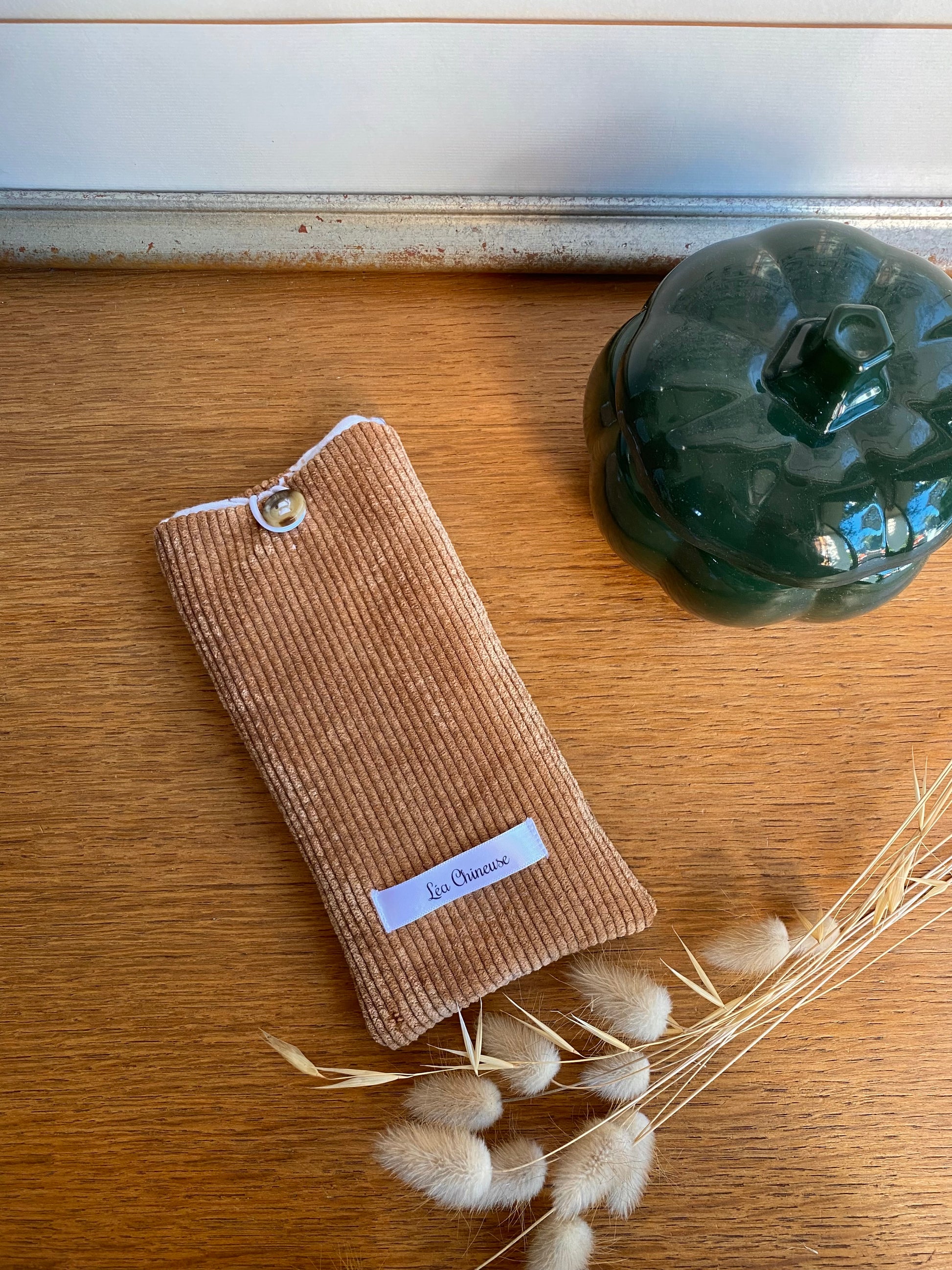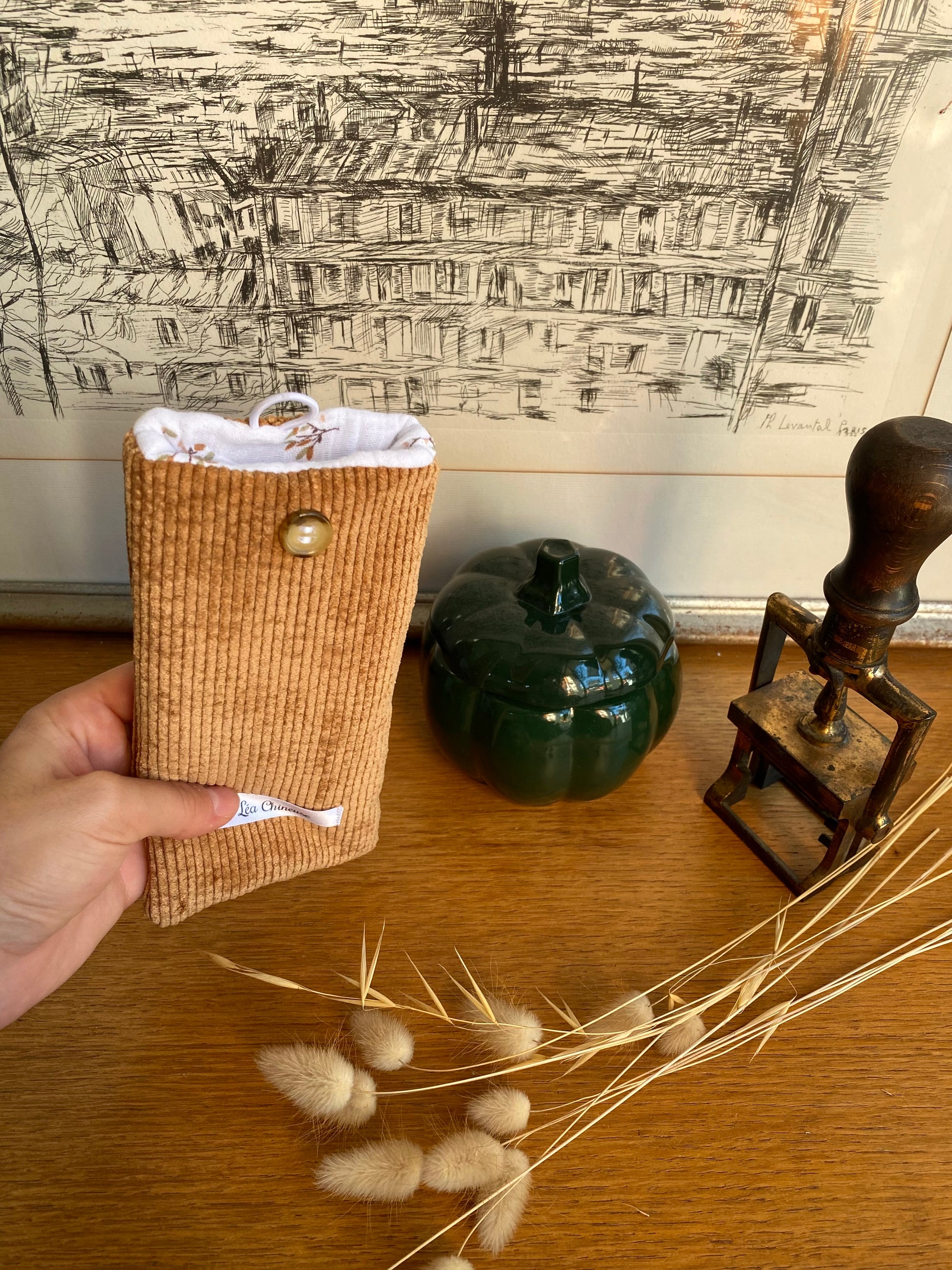 Ce magnifique étui à lunettes est en velours côtelé marron et gaze de coton à feuilles, le tout molletonné des deux côtés afin de protéger vos lunettes🤍