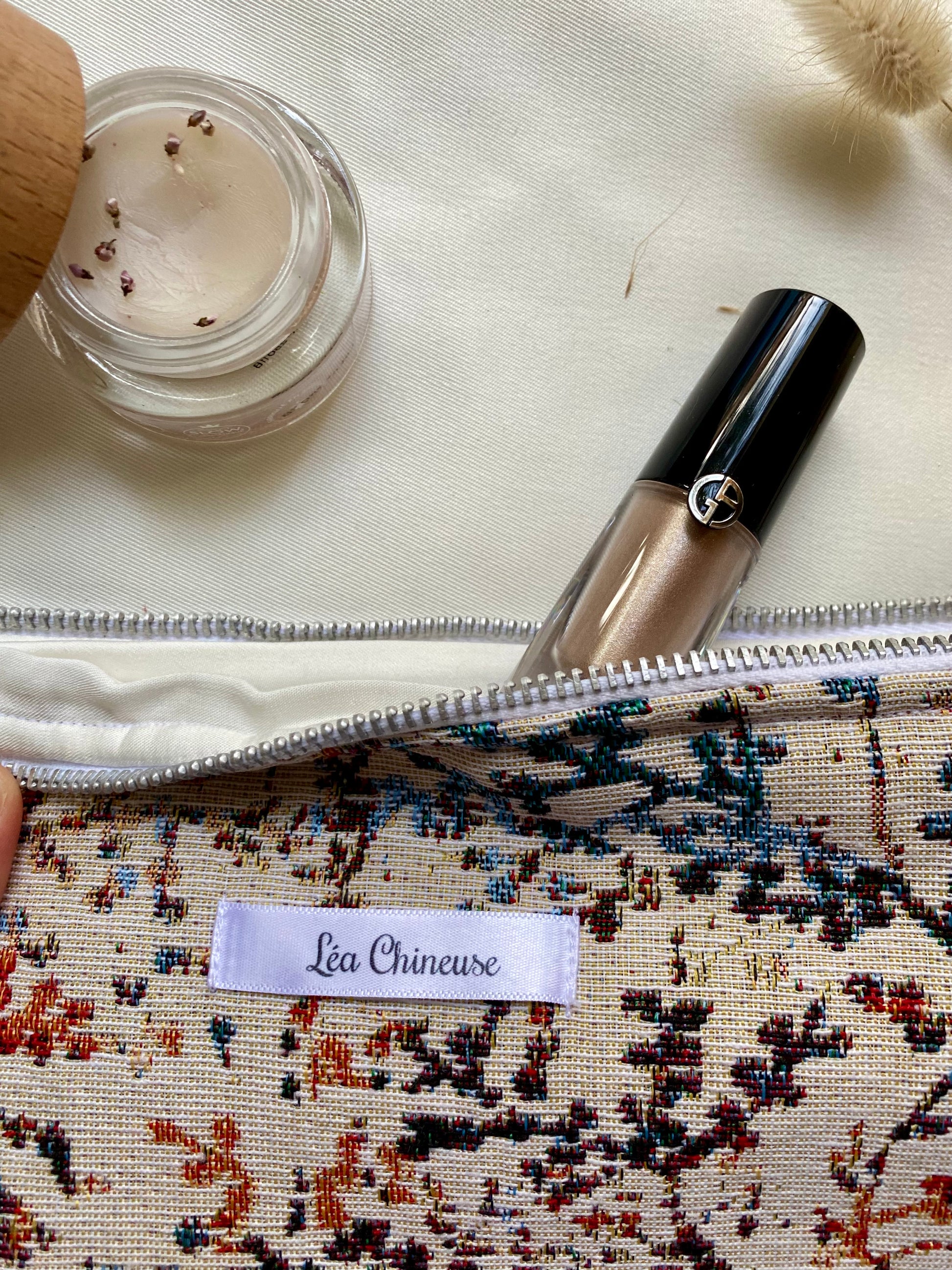 Cette pochette peut servir de pochette à maquillage et pinceaux, glissez-y vos crèmes et soins, elle est idéale pour emporter vos indispensables partout.