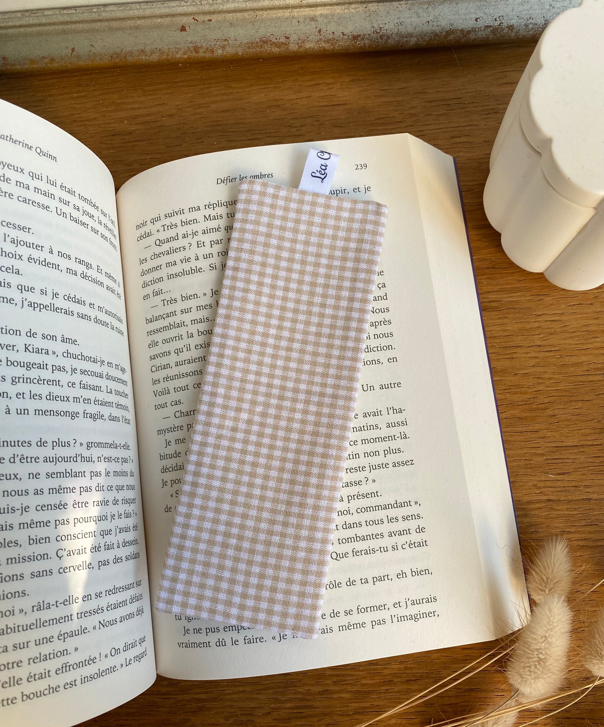 Sublime marque-pages en coton à carreaux beige et blanc pour embellir vos livres et ne pas perdre vos pages🌸
