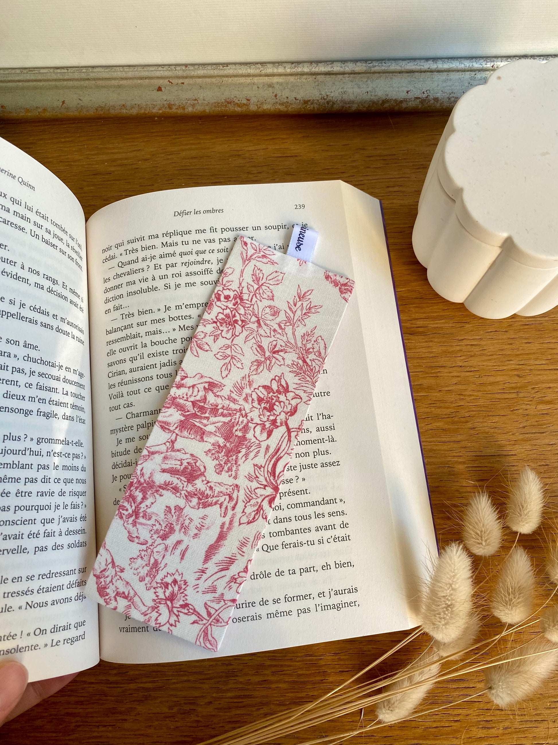 Sublime marque-pages en toile de jouy rose de coton pour embellir vos livres et ne pas perdre vos pages💗