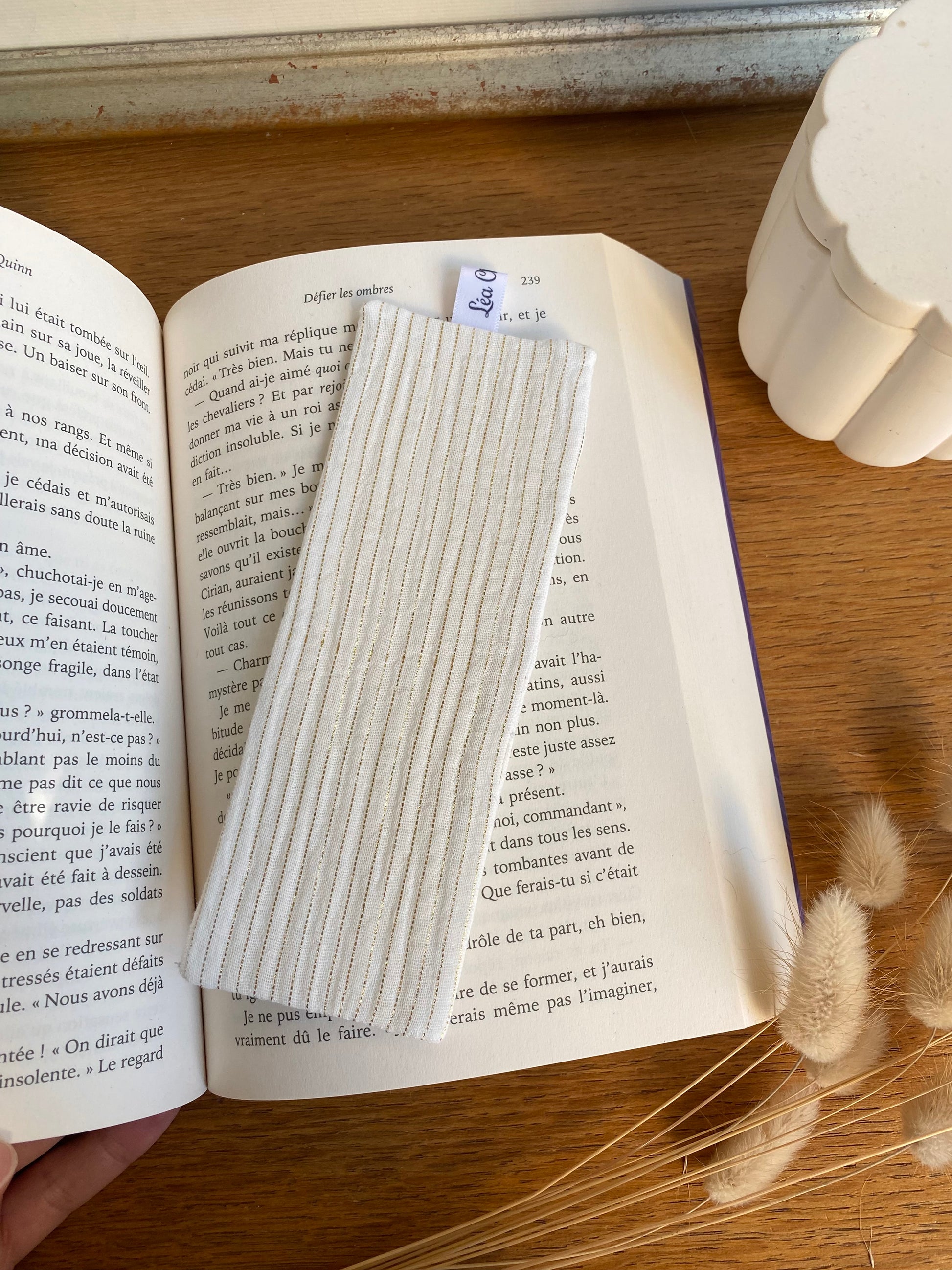 Sublime marque-pages en double gaze de coton à liseret doré pour embellir vos livres et ne pas perdre vos pages🌸
