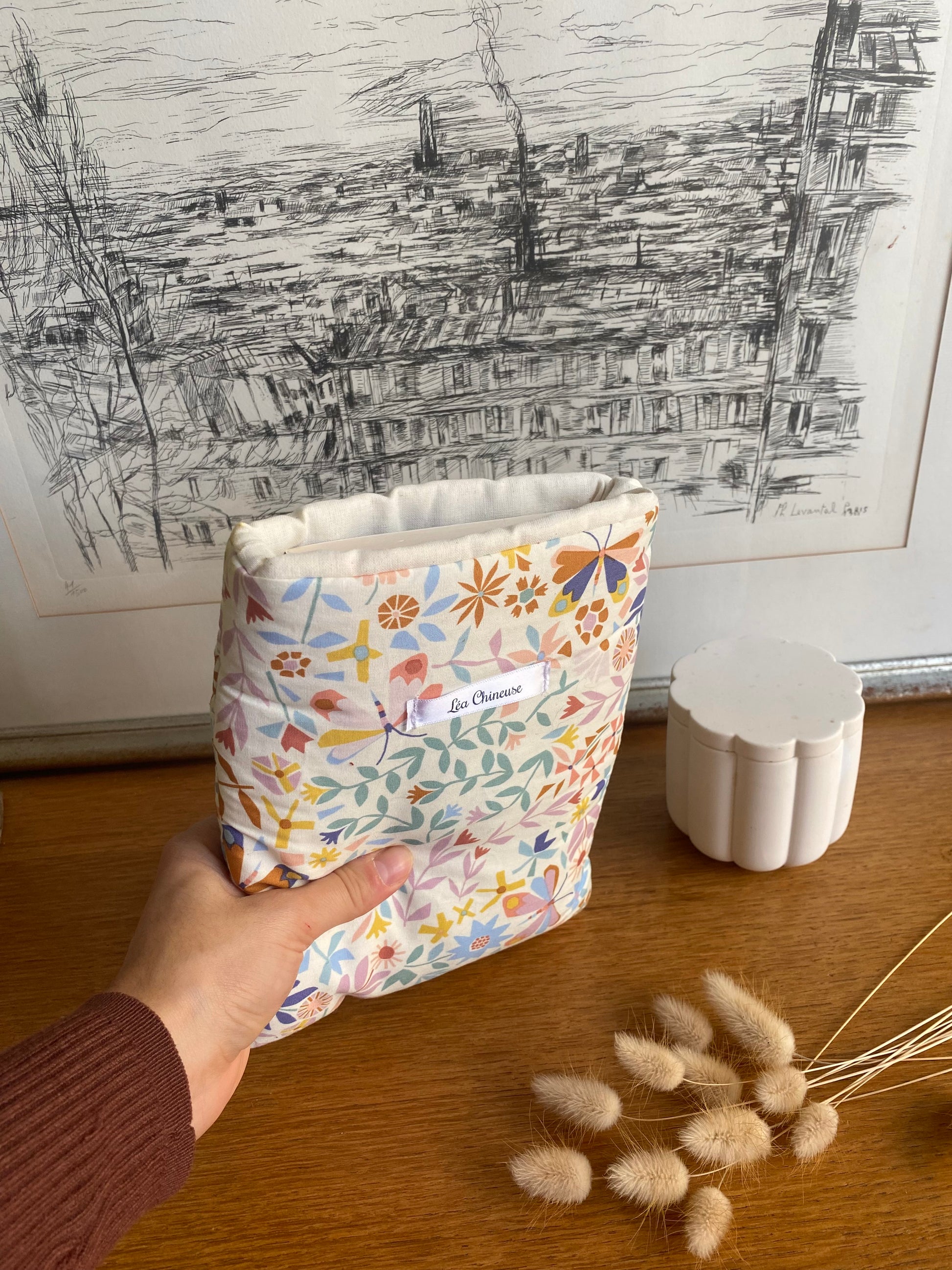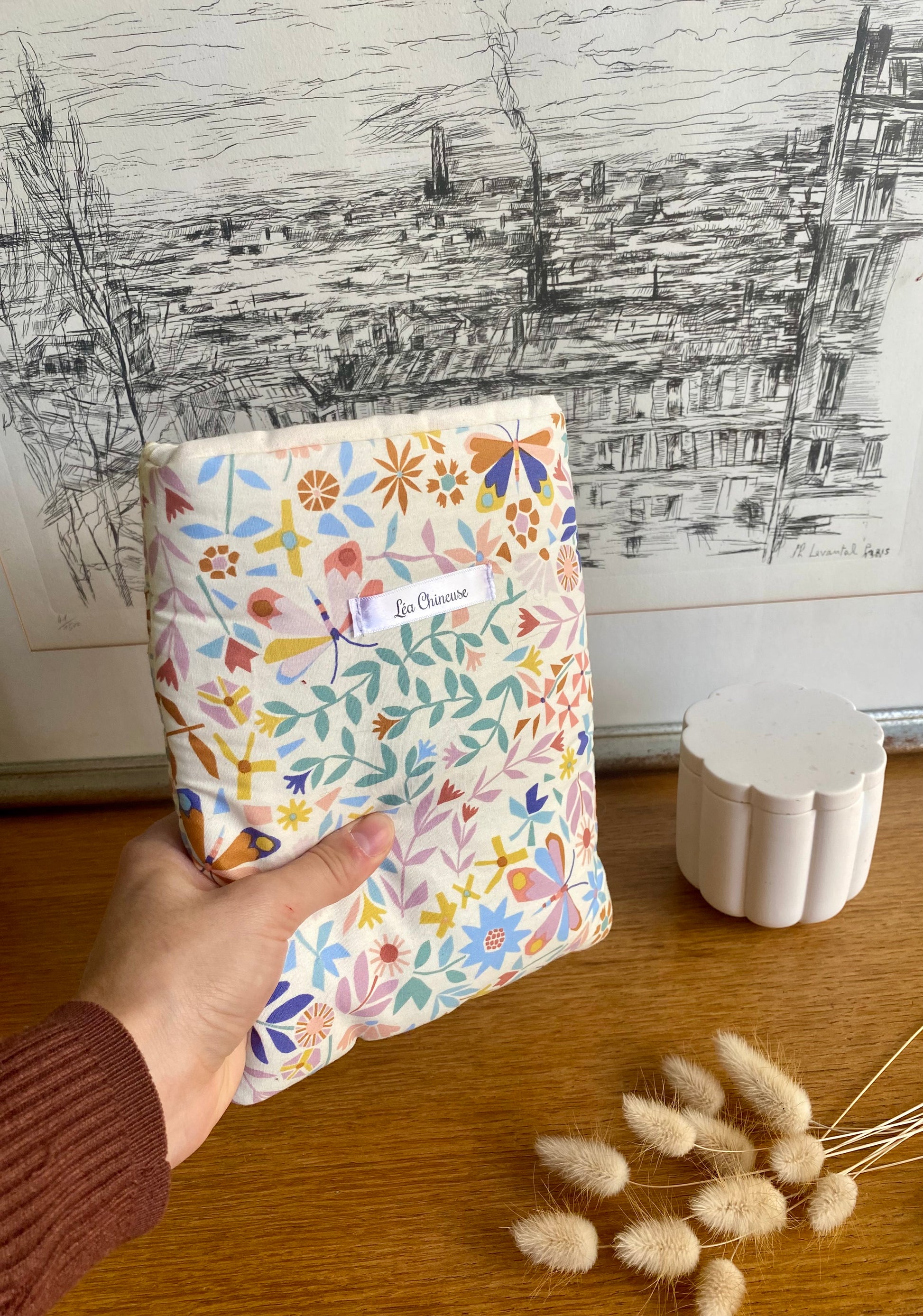 Magnifique pochette à livre en coton à motif floral géométrique et coton beige biologique molletonnée 💗