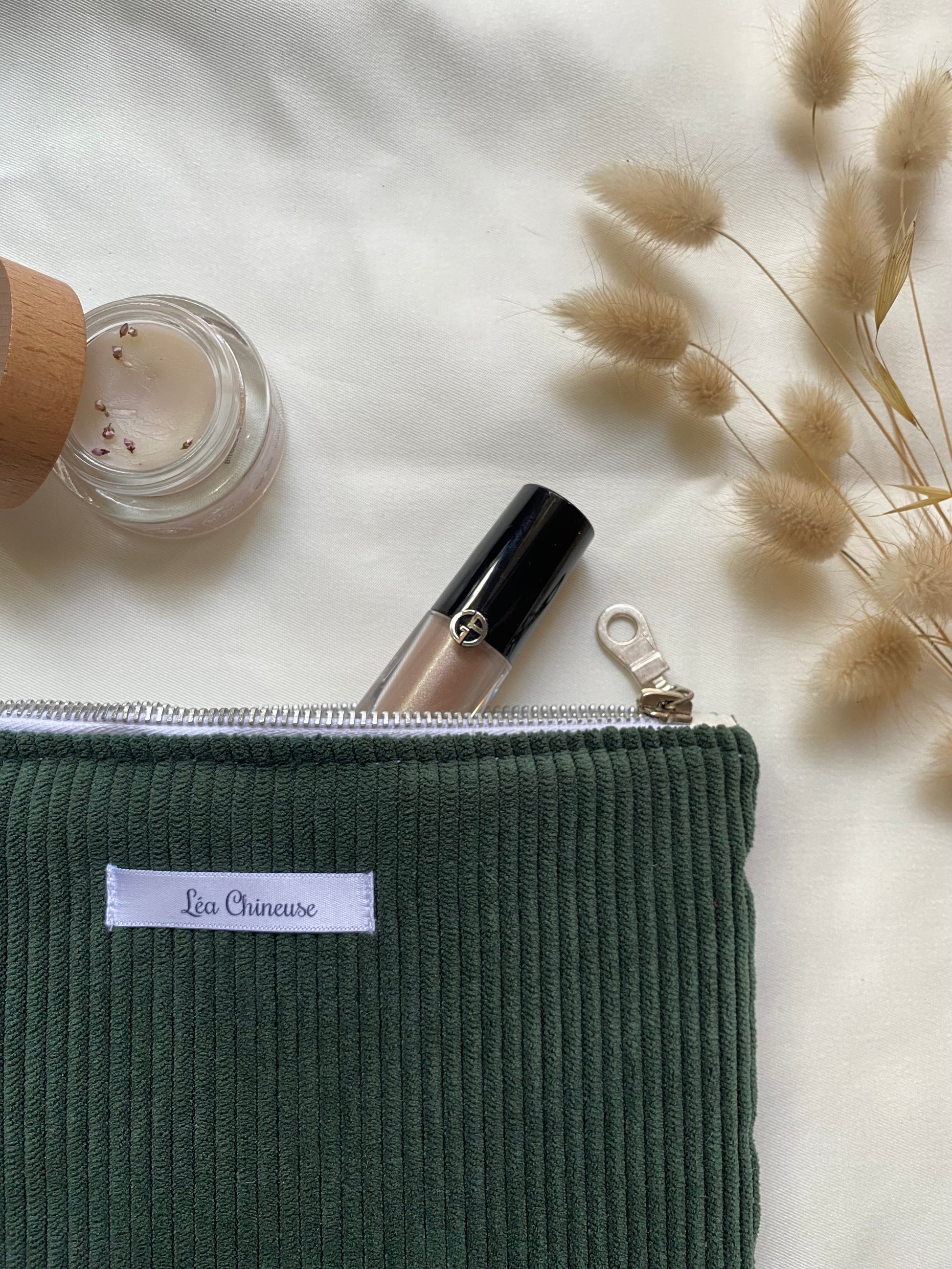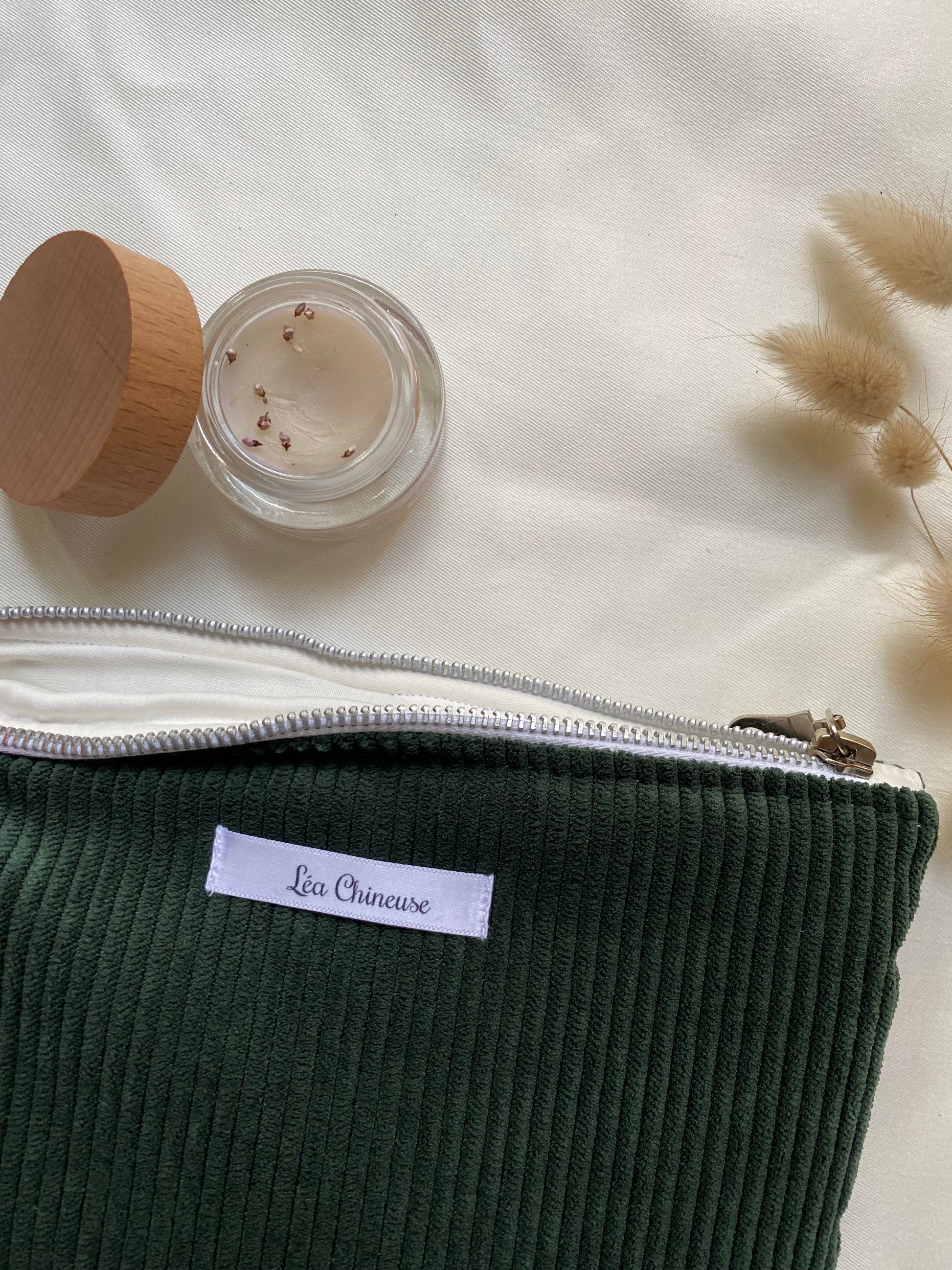 Voici la belle pochette moyenne molletonnée en velours côtelé vert sapin, et popeline de coton blanc biologique🌲