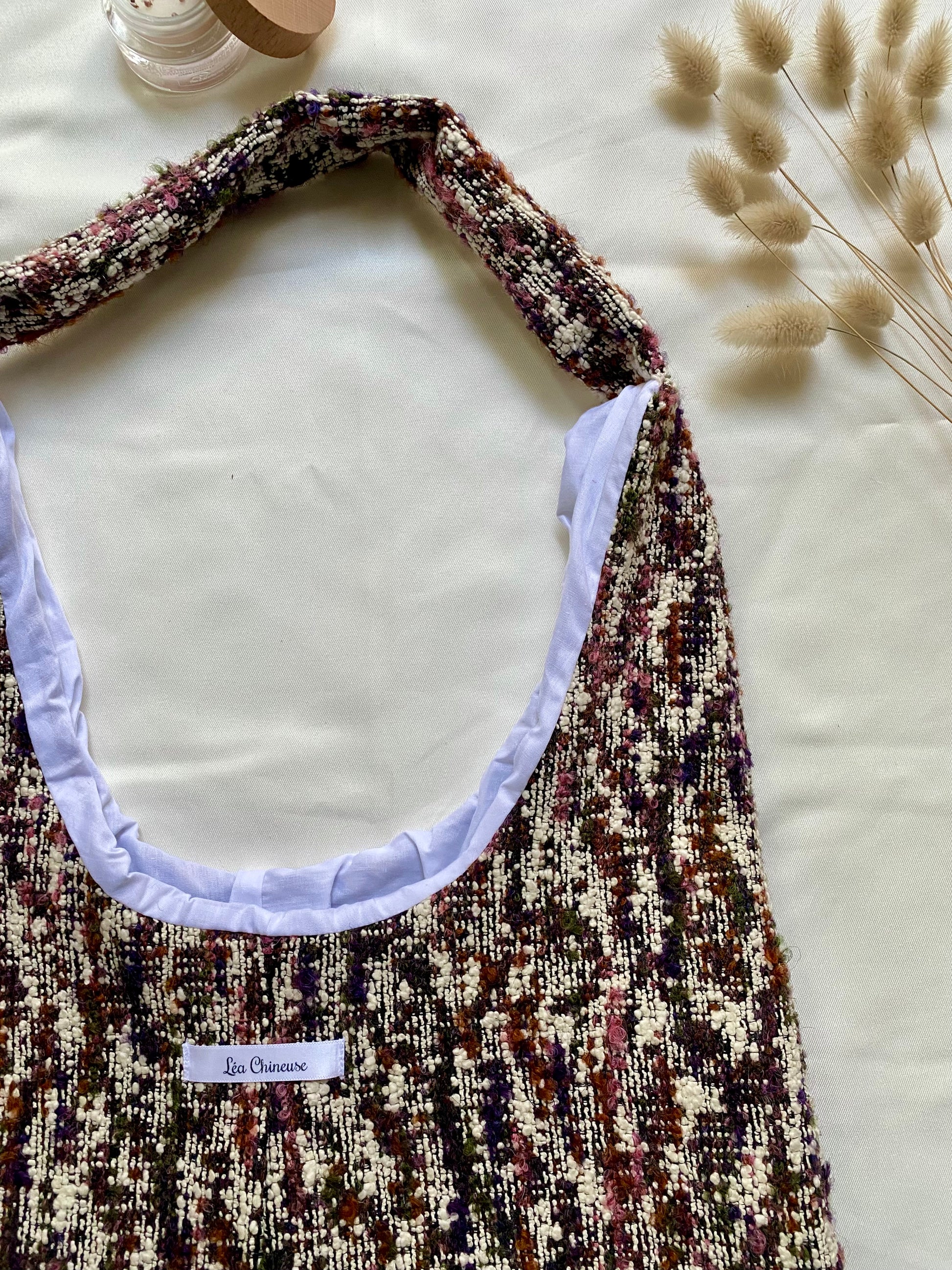 Sublime sac à main triangle en tweed et popeline de coton blanc biologique, chic et pratique, portez-le partout où vous irez 🤍